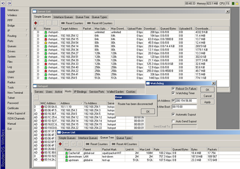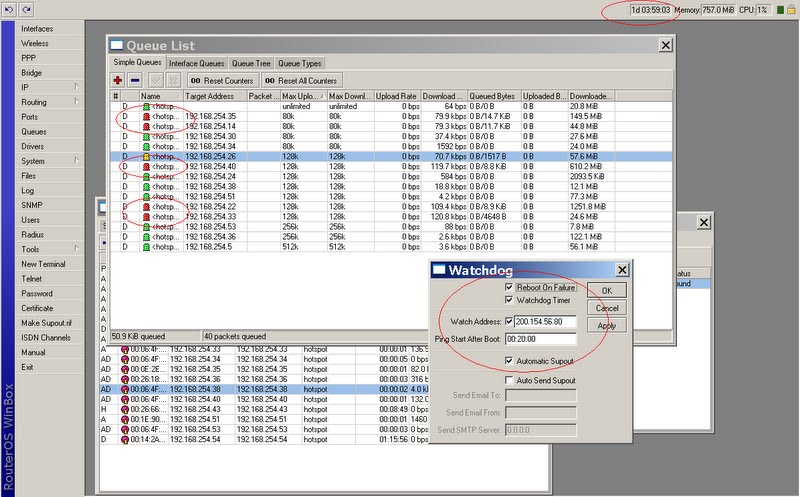 Quero essa vida "sossegada" é tudo de bom, acabo tendo que fazer o que não quero tenho que desativar o watchdog do MikroTik soluciona-se um problema mais acabo voltando pra outro ele me salva quando da pau na tranqueira velha sem ele fico na velha técnica: “desliga ai pra mim espera 2 minutinho liga de novo vê se a net volto, se não tiver entrando faz tudo novamente pra mim por favor” que porre ficar pentelhando um ser humano 4 ou 5 vezes por dia para fazer isso, o Watchdog CTS2111 da CIANET networking promete fazer esse trabalho mais tenho um tópico https://under-linux.org/f105/watchdo...otspot-137085/ falando sobre ele mais ninguém se atreve se quer fala nada sobre o assusto geral entra e meté o pé imagino que meia dúzia de mestres dos magos que saibam mexer nessa ferramenta mística maravilhosa mais é coisa de 7 chaves não é para um mero plebeu como minha pessoa, se pelo menos o suporte da cianet soubesse o que é Servidor MikroTik seria tão fácil era só por ele para pingar um IP externo e "voilà" veja funciona!