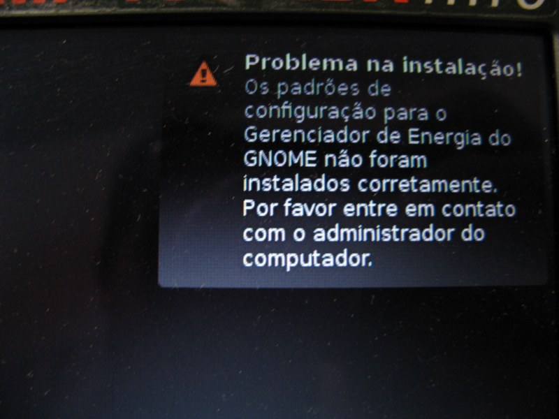 Os padrões de configuração para o Gerenciador de Energia do Gnome não foram instalados corretamente.