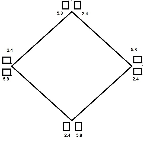 Como mostra no desenho abaixo eu faria grupos de 5.8 e 2.4 juntas, assim tendo 4 grupos 5.8/2.4. mantendo uma distancia determinada, anularia possibilidade de interferência em uma na outra?