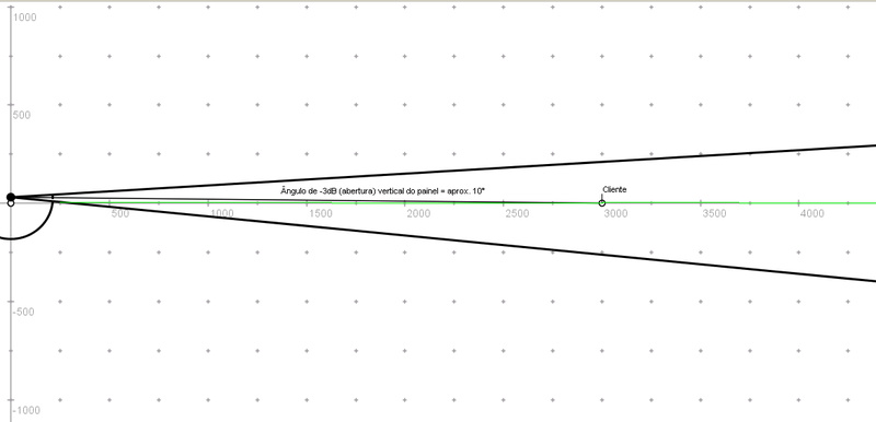 É um cálculo grosseiro considerando que haja abertura suficiente. Para mais precisão é preciso saber a abertura de meia potência da antena (-3dB) em graus. Creio que o cálculo que fiz acima dá uma boa aproximação pra solução do problema. Pelo que você falou, um cliente a 1 km não será atendido por que estaria fora da abertura. O que não é verdade. Não se esqueça que nas proximidades da antena o efeito de atenuação é menor e não significa que não haja ganho nessa área, apenas ele pode ser menor com relação ao feixe principal.