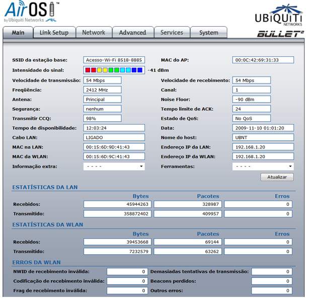 Pelo que entendi você esta usando sua rede em G, e esse bullet esta muito perto do seu pop, a sensibilidade em G é diferente da B, em nada adianta ter o cartão em potencia máxima, sinal bom não quer dizer qualidade de sinal..