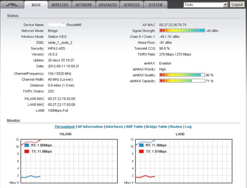 Como podem ver as antenas estão a 26 dias sem reboot.