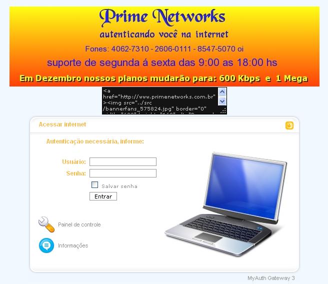 Boa tarde demattos, a internet funciona normal após a autenticação, a única coisa que estou achando chato é este quadro negro que aparece e não estava nos meus planos !!!