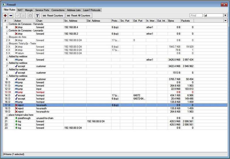 Olá a todos, Sou novo no forum e no mk tambem. Estou usando o mk 3.30 com hotspot + webproxy + dhcp. Tenho tentado ha um tempao abrir a porta do emula e nao obtive sucesso, Preciso da ajuda de vcs pra conseguir algo que já estou achando impossivel de se fazer...kkkk