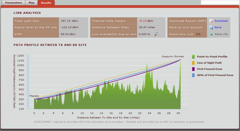 Estou montado um PTP muito mais critico que esse, em 900Mhz depois de muita analise de campo, cálculos, e pesquisa, estou conseguindo viabilizar o enlace que todos os técnicos que pegaram o projeto afirmaram que não tinha como ser feito. Antes de gastar uma nota comprando equipamentos, vc poderia ai em alagoas alugar um pequeno avião, e fazer um voo na área, sai barato, 300 reais, teco teco, ai tem muito deste. tira fotos. Infelizmente o GPS não são 100% por que os EUA proibi que dados de GPS seja 100% para uso civil, somente os Militares possui precisão de 100%. O que compromete uma analise fidedigna do pelas ferramentas de cálculo como Ligowave, sempre leve em consideração uma margem de 6% erro ou acerto.