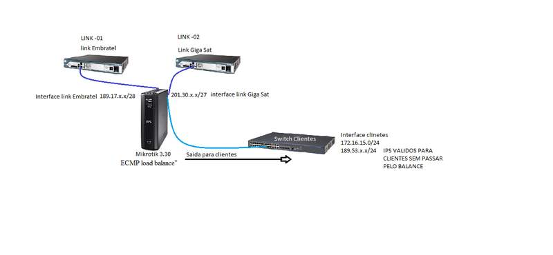 Padrão Balanceamento com 2 link no mikrotik repassando ips validos ao cliente, direcionar ips validos para sair so de um link