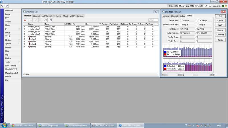 Bom quero fazer um Load Balance com 1 link adsl de 8 mega de down e 512 de up (que só chega 4de down e 512 de up) e 1 link dedicado de 1MBdown\1MBup, fazer os links rodar eu sei (mais acho que os 2 não funcionam simultaneamente no mesmo equipamento) o link dedicado não funciona com o dns do link adsl (não testei se o adsl funciona com o dns do link dedicado) o equipameno que tenho em maos para fazer LB é uma rb450g. alguém não teria uma configuração pronta só pra mim restaurar em meu MK?