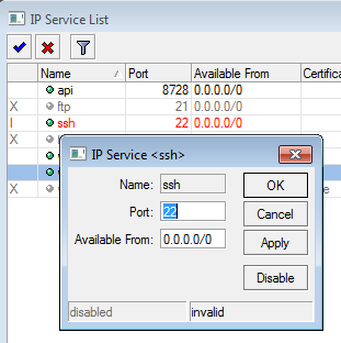 Boa tarde a todos, estou com um problema extranho em 3 servidores mikrotiks, todos estão apresentando o mesmo problema de comunicação com a porta SSH, já fiz toda modificação possível, mudei portas, reiniciei e nada, observem a imagem.