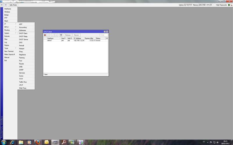 Como que tá o teu modem: bridge ou roteado? Se tiver roteado, vai na rb, ip >>>DHCP client>>> + como na imagem abaixo...