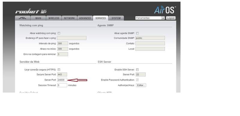 Para o nanostation você também deva configurar neles a porta que deseja para o acesso lá em > SERVICES > Servidor de Web > Server Port