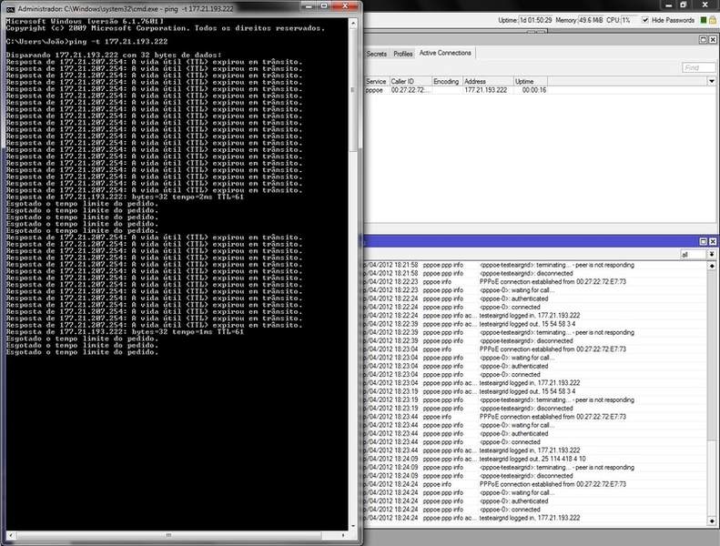 Eu tenho um AirGrid M5 como cliente e um Nano M5 como AP, ambos são v5.5.2, e acontece isso logo após a autenticação PPP: