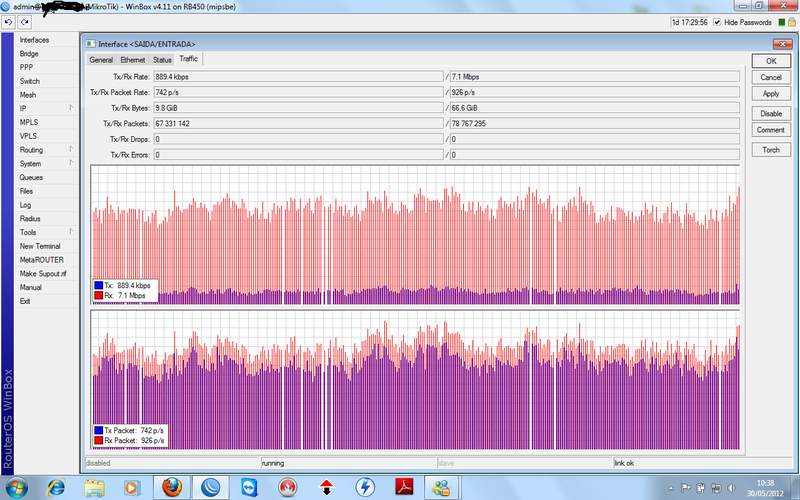 tenho um link full da OI de 10MB, link chega até mim da seguinte forma, vem wireless de uma cidade vizinha q deve dar uns 10km em linha reta que cai na torre da OI aki da cidade, ai da torre sai fibra optica até a empresa fornecedora, ai tem os roteador da OI que sai um cabo de rede pra mim, no qual tenho uma RB 450G em brigde só para destribuir internet para a empresa (rb433 que acabou ficando la)e para clientes os cliente PC-AP..