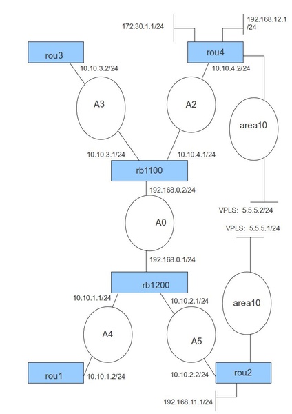 criei uma instancia vpls(coloquei essa interface vpls como interface da área x) com outro roteador rb 450 e a intenção era inserir apenas as redes dessa area no vpls.