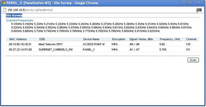 canal para se trabalhar, quando eu clico no survey do ap ele da um scan e aparece essa tela!