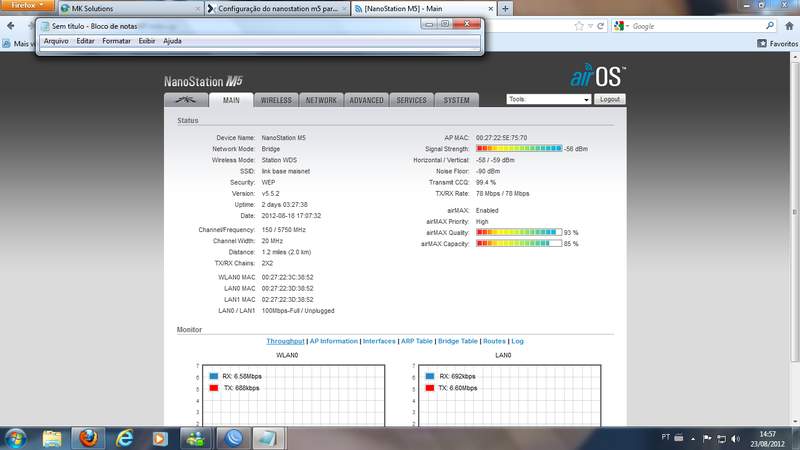 Tive problemas com algumas antenas da aquario para enlace a bacia de 60 cm, enlace de 1,1 km de distancia com visada, o sinal nao baixava menos de -79, a qualidade ficou bem abaixo do esperado, entao decidi comprar 2 nanostation m5 para fazer o ponto a ponto.