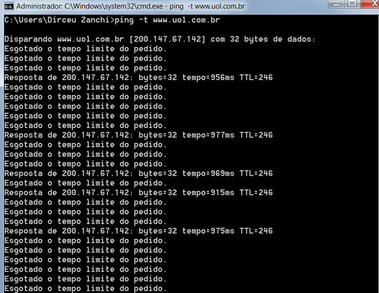 PROBLEMA: Ping bom por 5 a 10 minutos sem perda de pacotes, de repente pings de 1200, 500, 800, com perda de vários pacotes apenas voltando ao normal depois de alguns minutos.