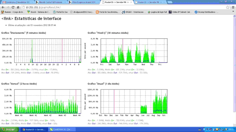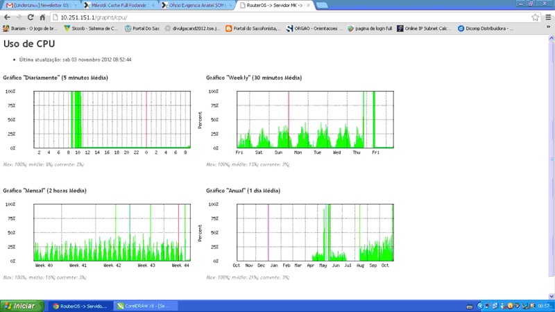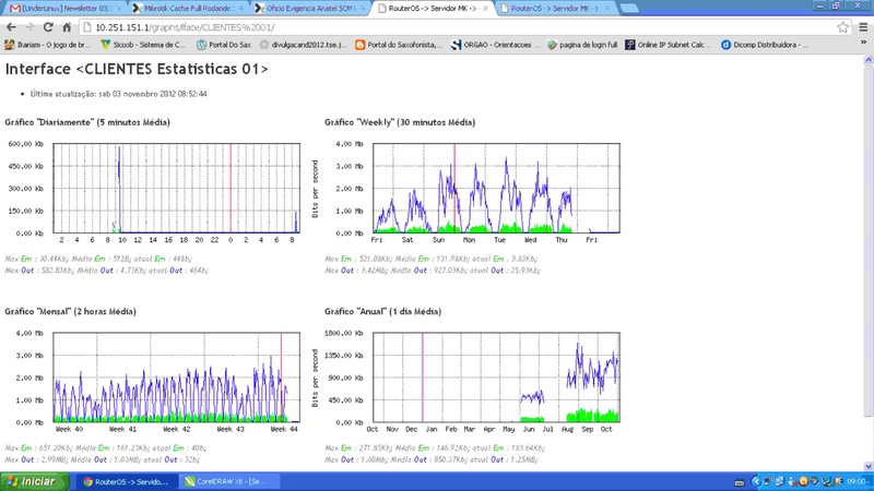 Comparem nos graficos de Link e de Cliente e vejam que realmente funciona, link de entrada com uma banda e link de saida com outra banda,, isso com apenas 30 usuarios.. muitos falam que cache so é para provedor de grande porte, em partes concordo pois a requisição será maior, porem com pouco tb funciona. Esse ai de quando motei nunca me deu dor de cabeça, nada de lentidão e nada de erro de pagina...