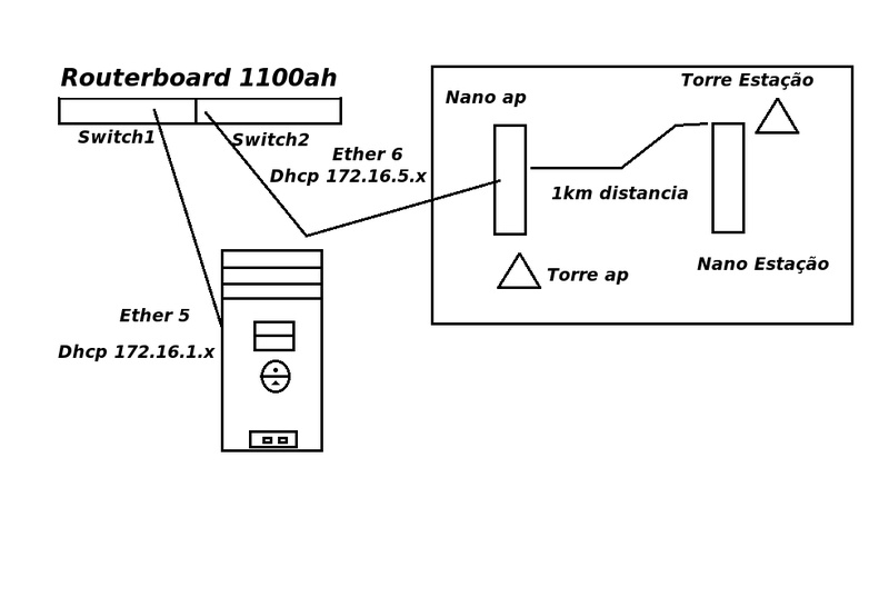 Pessoal minha duvida é a seguinte: Como mostra a imagem abaixo, participo do switch 1 da rb 1100, com hotspot e dhcp, não utilizo bridge nesse autenticador, como faço para me conectar via winbox na outra rede (Ether 6) se ela participa do swith 2?
