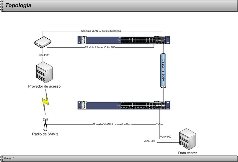 O provedor de conexão de internet no site 1, possui um rádio no site 2 de 6Mbits. Então a redundância da FO de 1Gbit poderia ser feita por meio de 6 Mbits passando somente os pacotes essencias (Ex TCP/1521, 80/TCP (com shape) e etc) já que a fibra conecta por um lado e o rádio + a rede PON conecta pelo outro lado.
