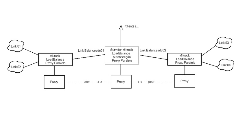 A meses venho estudando uma topologia adequada para a realidade da minha rede, na qual eu possuo 04 links de diferentes operadoras... e depois de muito trabalhar cheguei ao esquema abaixo (imagem anexa).
