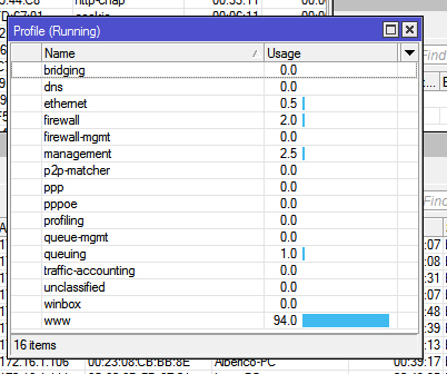 MIKROTIK - VISUALIZAR CONSUMO DOS PROCESSOS ATIVOS