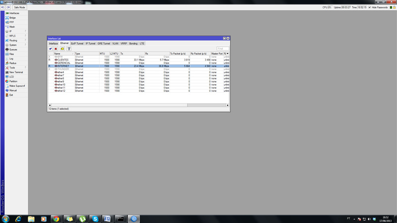 Ola Pessoal estou com grande problema na minha rb uma ccr 1016 V.6.1, ela esta com um consumo muito alto de upload, na interface Internet, o mesmo não acontece com Interface Cliente, percebo também que isso não acontece o tempo todo estou enviando algumas imagens para ver se alguém consegue me ajudar, desde já agradeço a força de todos.