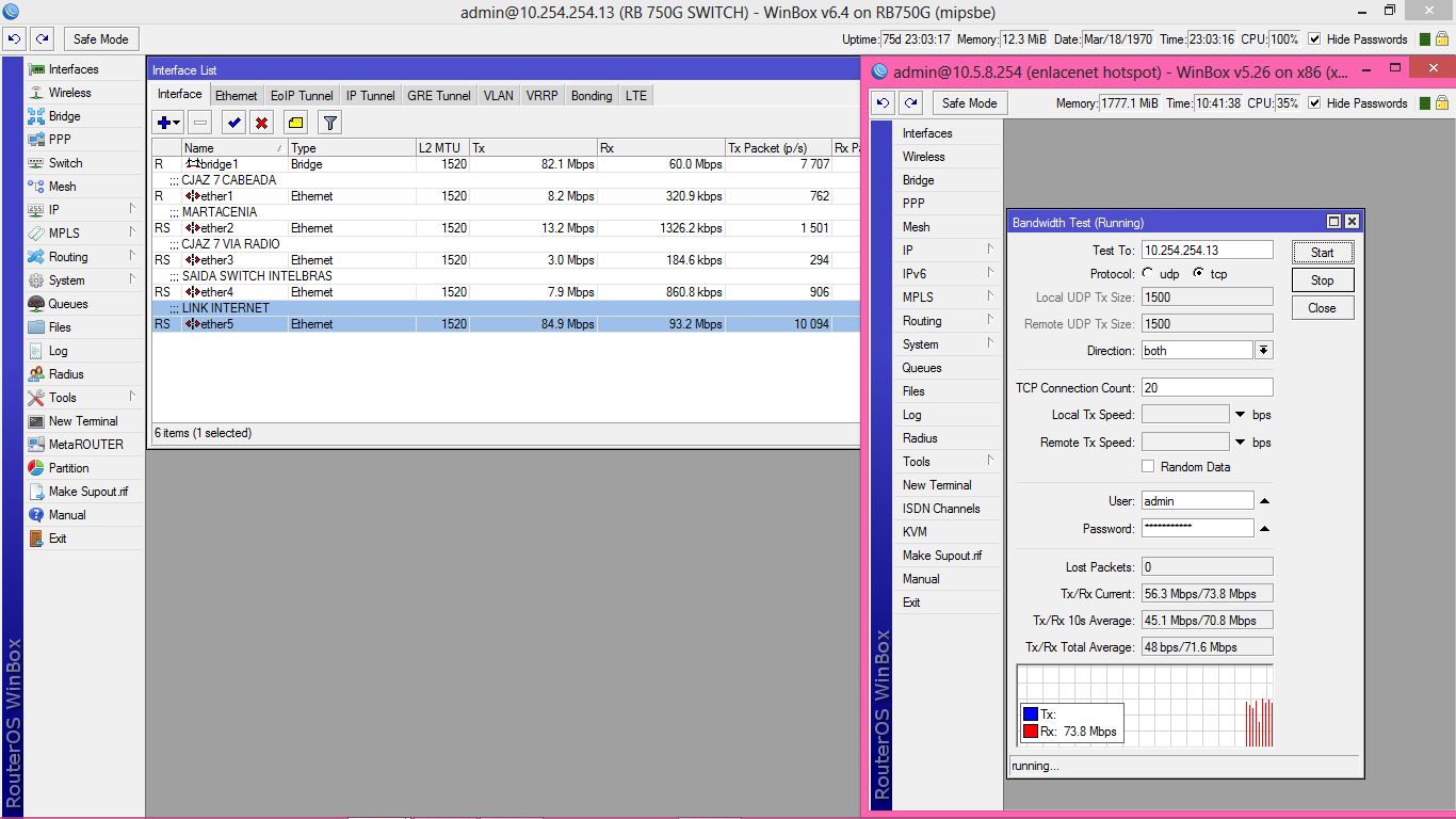 Tenho um link com Intelbras + Antenas e pigtails ALGCOM 30dBi, 32Km/142MBps, latência baixa, configurado para 80% DOWN e 20% UP, mais de 8 meses ininterruptos. É tanta banda e tanto processamento que tive que trocar as RBs, pois as antigas ficavam travadas em 100% e limitavam o resultado dos links.