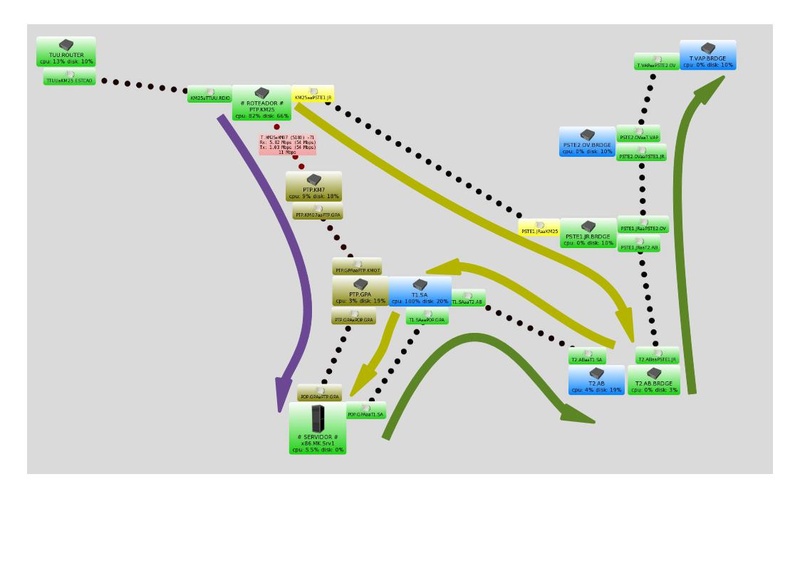 Bom dia, estou necessitando trafegar "Internet + Clientes" em determinado trecho da rede. Conforme figura anexa, estamos desabilitando o trecho em "verde musgo" indicado pela seta na cor roxa (por onde atualmente temos saída para internet).