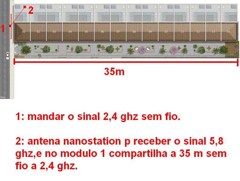 2) colocaria um mastro entre o segundo e terceiro apartamento com antenas nanostation loco m5 (260,00)