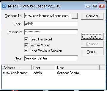 Eu vi um servidor em que o moderador acessava o seu mikrotik pelo winbox, e ele acessava mais ou menos assim, ao inves de um IP e uma página www. EX: "www.servidorcentral.ddns.com"