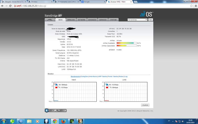 equipamentos: 2 nano bridge de 25 dbi 5.8 passando 50 megas da gvt
