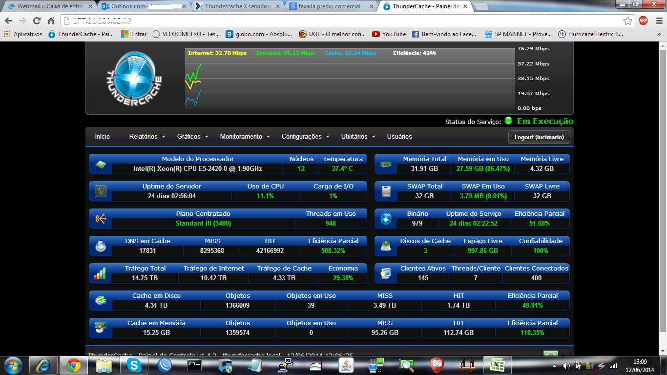 E quanto de link full contratado e quanto o cache tá "salvando" ?