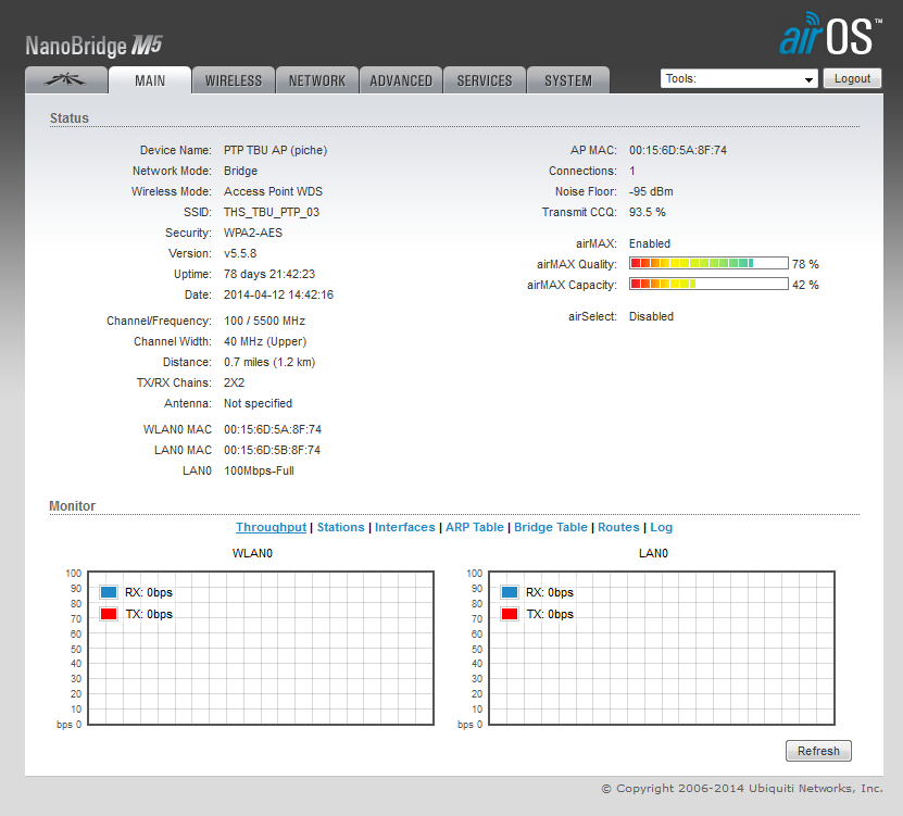 A estação é jogada em um switch que manda pra mais 5 ap's, que ai sim mandam pros clientes.. puxa um throughput razoável..