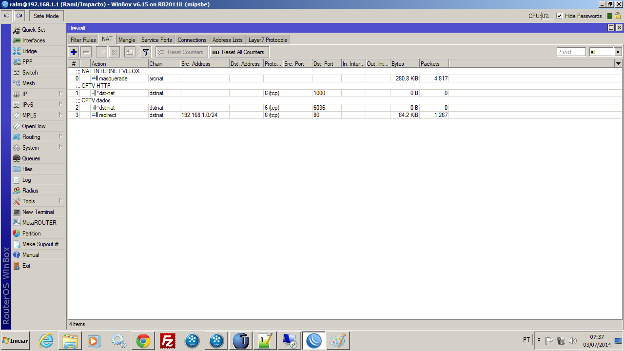 Seguinte, aqui na empresa em que trabalho, implantamos o mikrotik com o hardware rb2011il -RM.