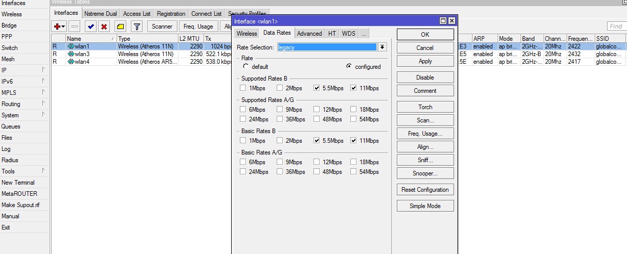 pessoal estou com uma duvida eu coloco um data rate de 24mb modo g no mk beleza mas no registration os aps cliente se conectam em qualquer data rate nao vai degradar a rede nao se eles estiverem todos com 1mbzinho