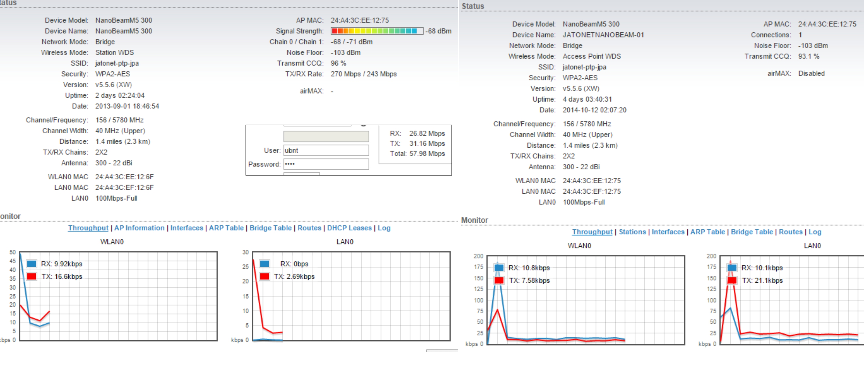 Boa noite pessoal, fiz um ptp com duas nanobeam, distancia 2.3km