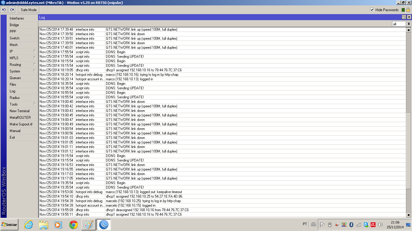 Veja no setup dessa GTS se não é ela reiniciando, ela exibe o tempo de uso, é só comparar com o log pra ver se o tempo de uso bate com a última perda de conexão com a RB750 ou não.