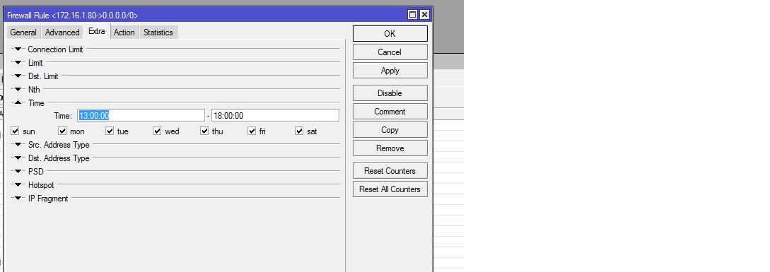 00:00:00 e 1d 00:00:00 (Padrão) E corrija a regra para o tempo desejado.