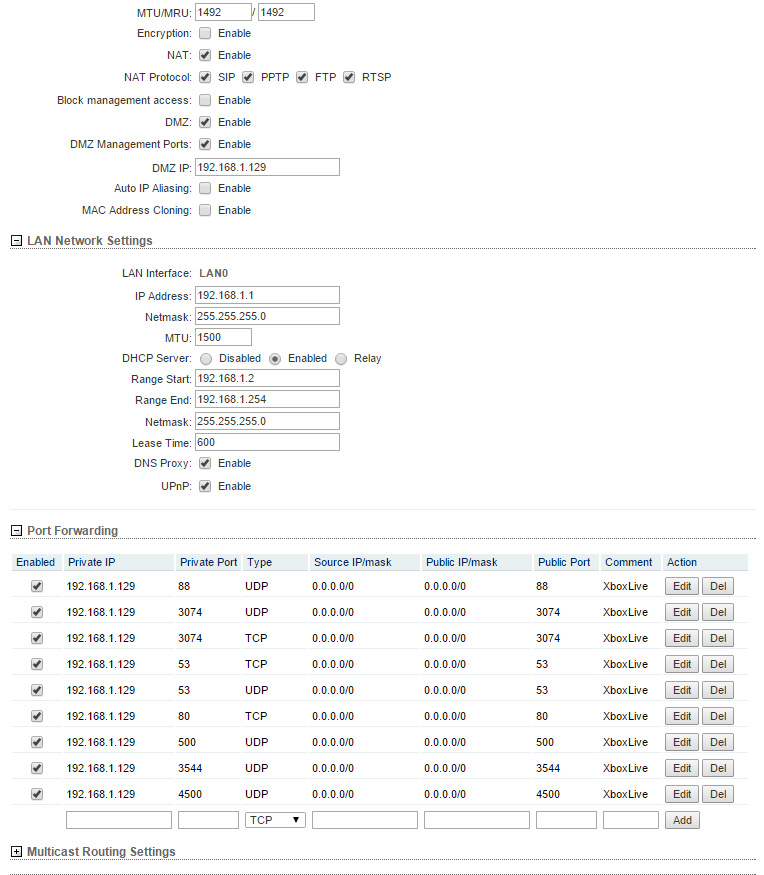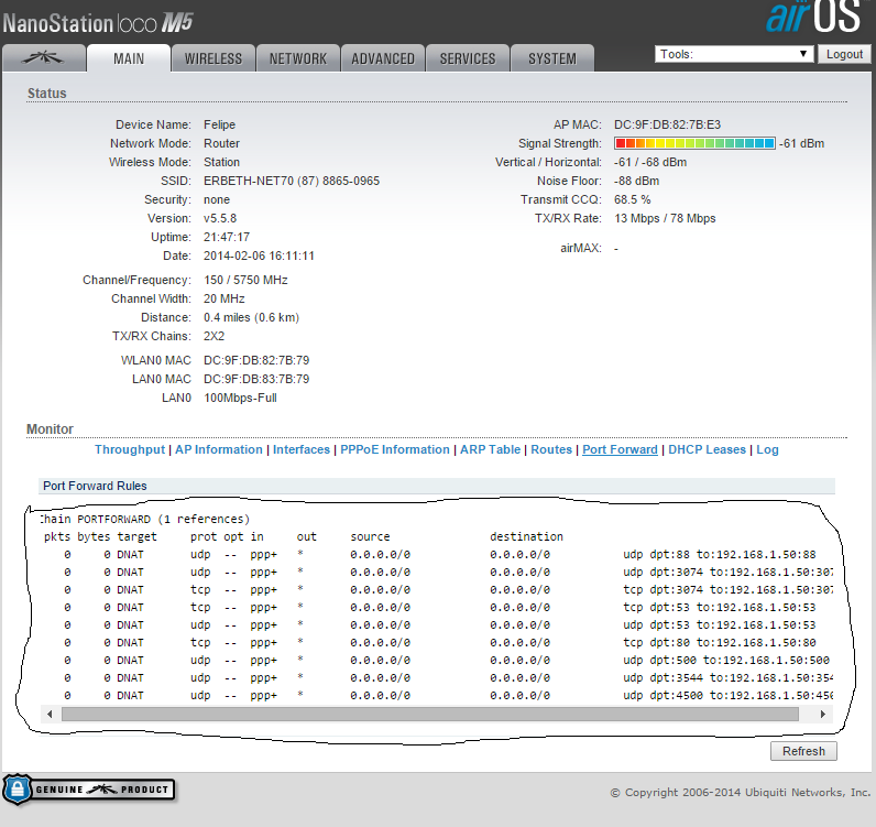 Bom galera, já havia procurado soluções em algumas páginas, mas nenhuma delas me deu uma resposta clara ou que fosse de fato a correta. Estou tentando abrir as portas para conseguir jogar na Live no meu Xbox One, mas já fiz o que me passaram, mesmo assim, o NAT continua dando "Estrito" quando deveria estar "Aberto".Gostaria de saber se estou fazendo o processo corretamente, e se esse fórum não for especializado nisso, me perdoem.IP da minha Nano (NanoStation locoM5) 192.168.1.1Gateway do meu roteador (D-link DIR-610) 192.168.0.1Não entendo muito bem se precisa ou não mexer nas configurações do D-link, creio que seja apenas na Nano, mas segue anexo com as imagens.Desde já, agradeço.