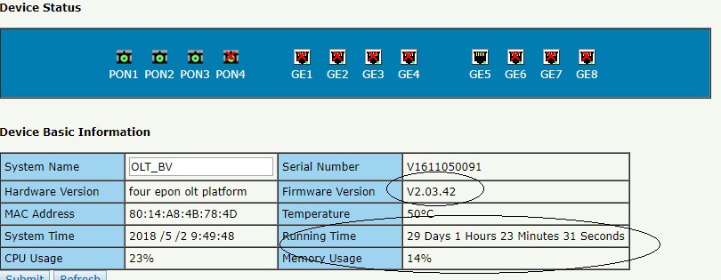 Amigos, comprei recentemente 2 OLT V-SOlution 2pon ( V1600d2) na qual elas vão aumentando a memória usada até chegar a 100% e rebootar, acontece com as 2 , achei ate que fosse alguma coisa relacionada a configuração, no entanto, uma delas está em default e a outra configurada e ambas fazem tal procedimento.