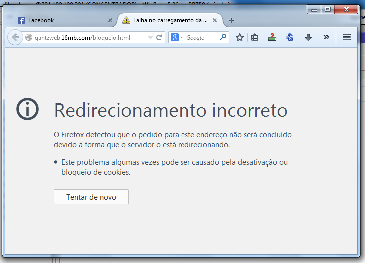 Peguei um exemplo aqui no fórum de página de bloqueio e aviso sem usar hotspot e nem servidor externo. Porem não estar funcionando corretamente, ao bloquear um cliente e este cliente tentar navegar, ao invés de aparecer a página html configurada, o navegador dar um erro e aparece a mensagem abaixo: