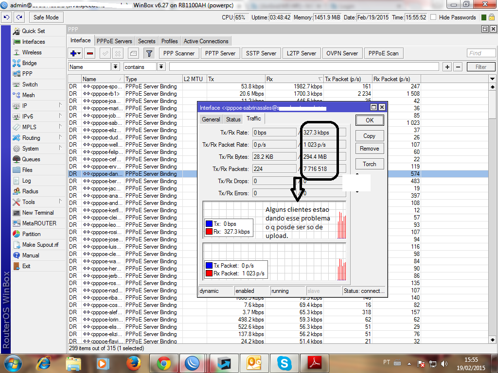 as vezes tem cliente que esta com 15 mega de upload mas com download zerado sem conseguir navegar ai reinicio o servidor e volta ao normal,ai depois volta o problema de novo, não são todos só clientes são alguns...