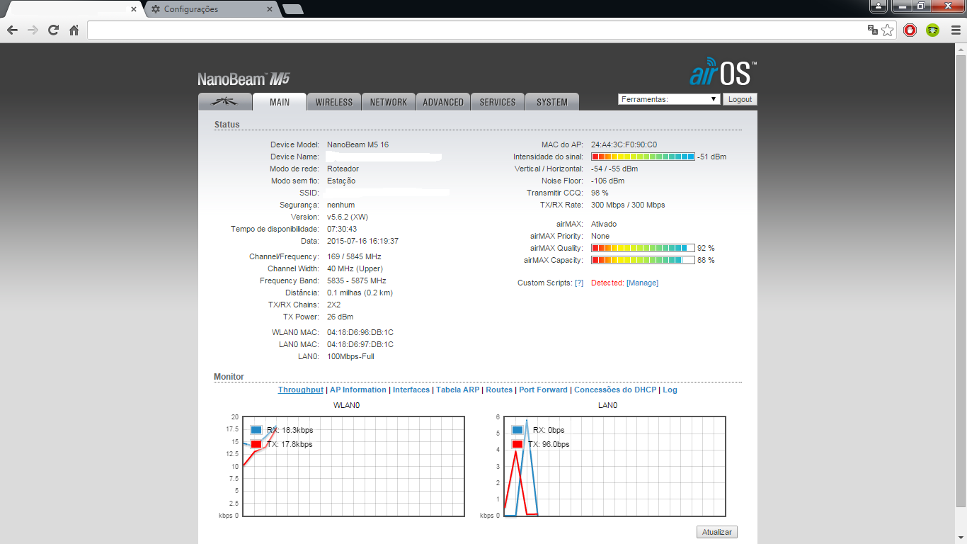 Equipamento do cliente: NanoBeam M5 16dBi.