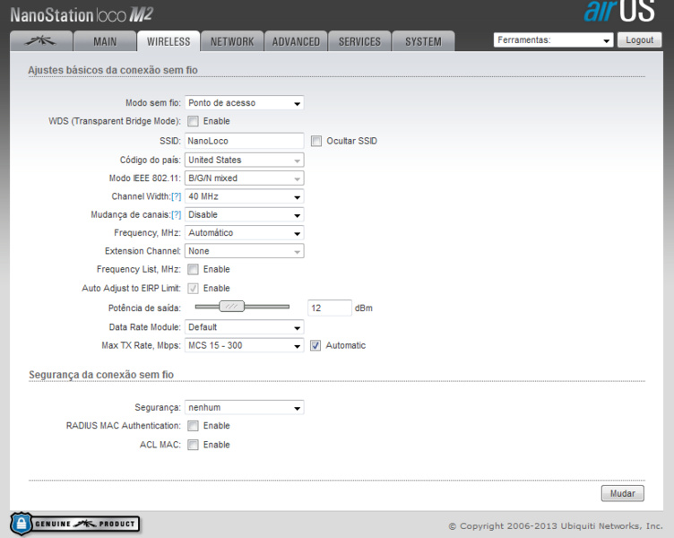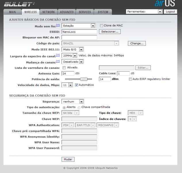 baixo deixo os prints do nano loco em AP e do bullet2 como cliente-bridge.