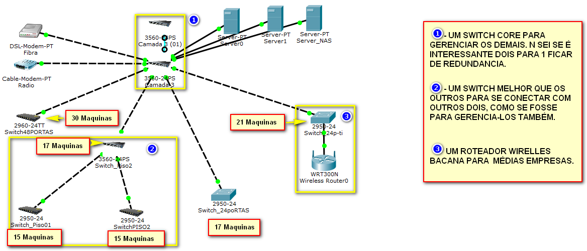 Porém fiz um desenho para reestruturação da rede onde trabalho e gostaria de saber o que vocês me sugerem, modelo e o porque.