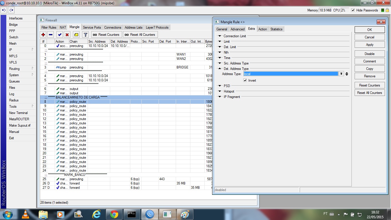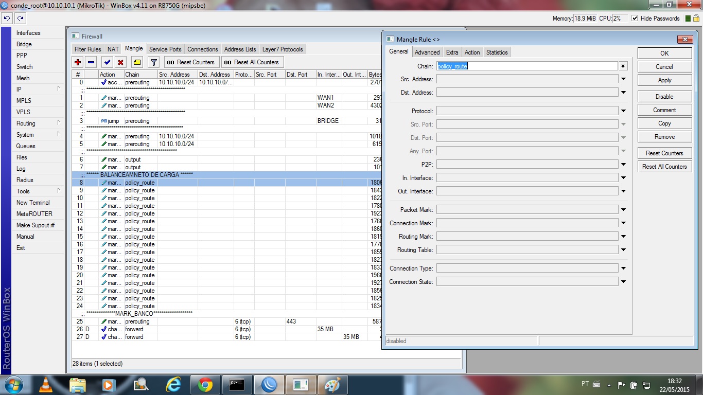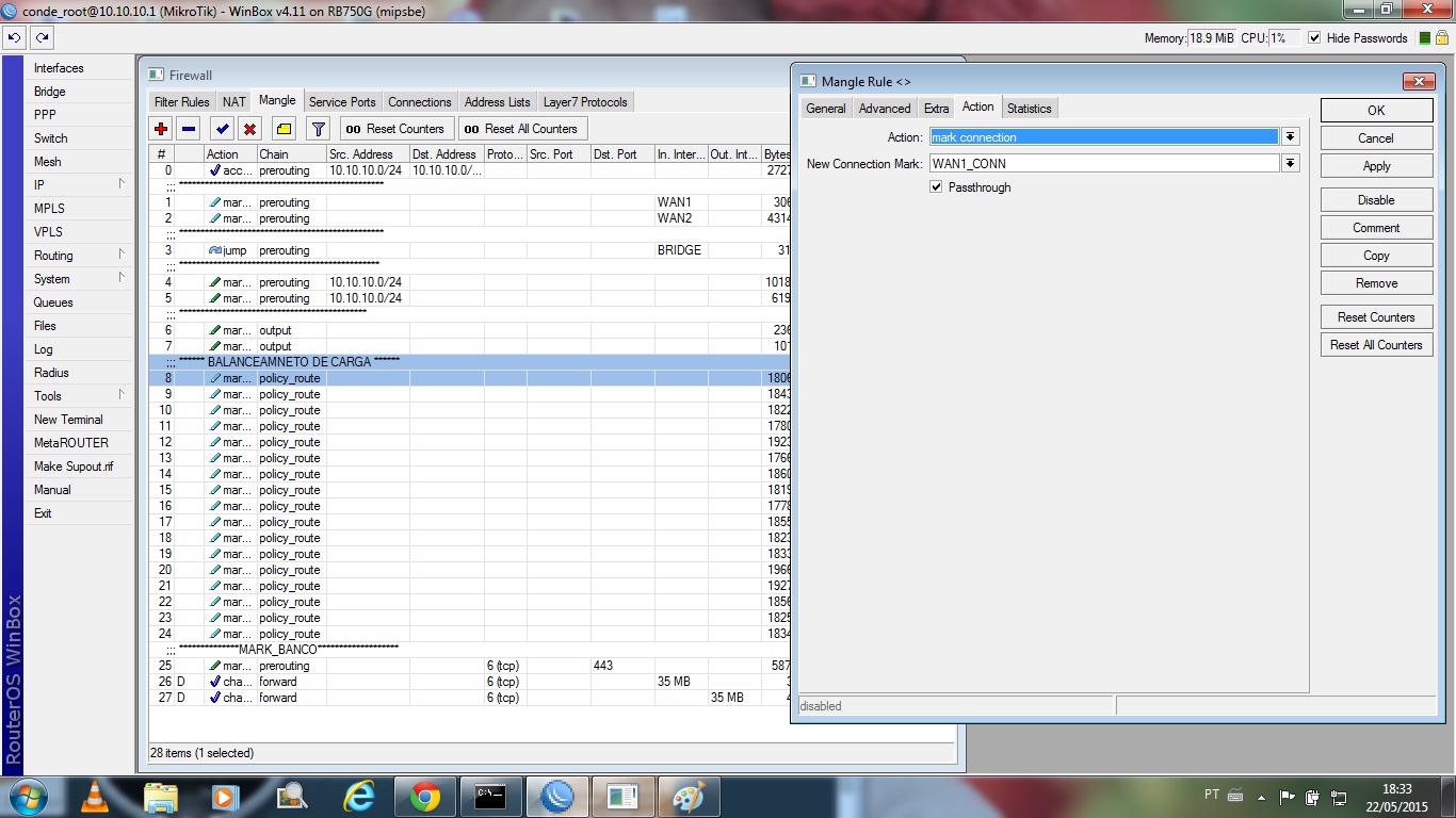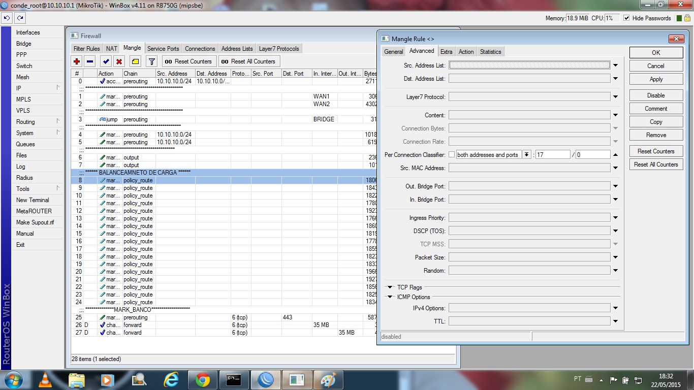 Bom noite, amigo primeiramente com esse RB vc não precisar detalhar muitas coisas na marcação ela não suporta segundo vc vai saturar todo seu link da rota default e terceiro esse Router não suporta a demanda brother coloque um routerboard mais robusto posso até está enganado mais no cálculo que vc realizou olhei as imagens muito rápidas e também a imagem aqui pelo o cell está muito ruim rsrs acho que o algoritmo que vc calculou está errado soma-se todos os link's e divide pelo o link menor dar uma olhadinha na wiki da mikrotik. Sim e apaga aquela regra de 443 vai saturar todo seu link outra coisa vc está usando core também nesse mesmo router? Se for mais uma vez troque o por algo mais robusto.
