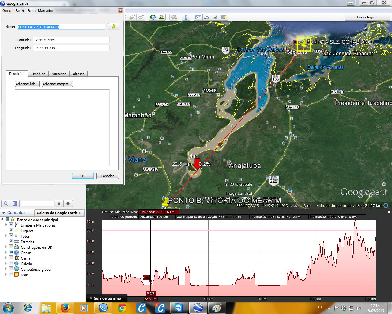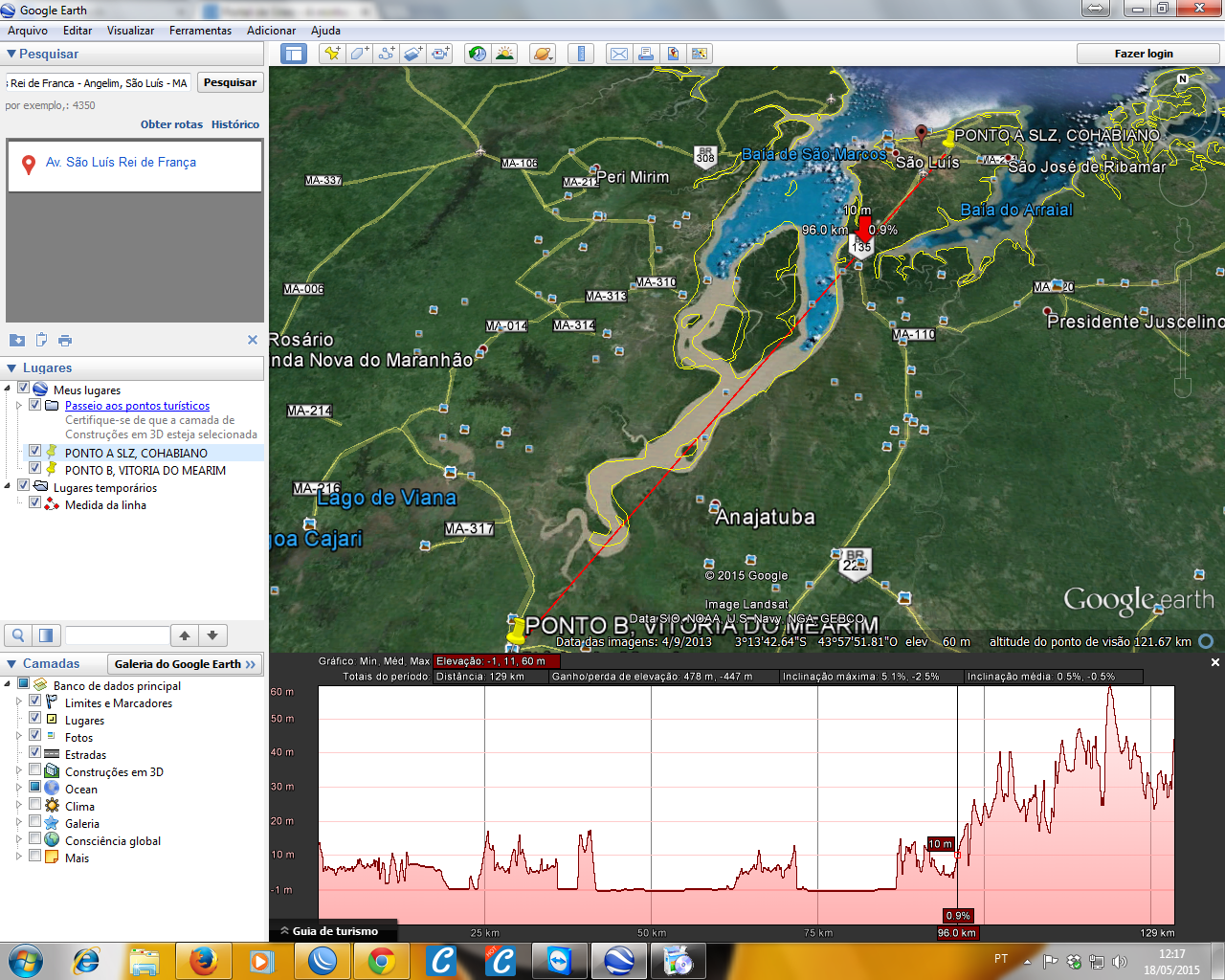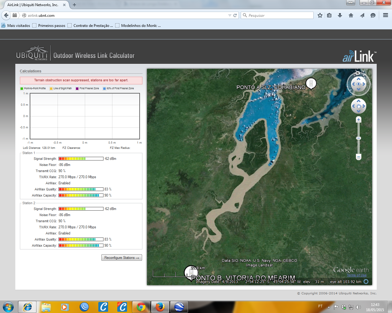 Bom gostaria dos que puderem ajudar, e contribuir com opniões sobre que radios usar, altura das torres, se vou precisar de apenas duas ou mais torres e sobre a banda maxima que poderei passar no enlace. Estas são as coordenadas, Ponto A (Latitude 2°31'43.93"S / Longitude 44°11'13.44"O) Ponto B (Latitude 3°27'34.16"S / Longitude 44°52'18.85"O). Abaixo tem imagens de um pre estudo que fiz.