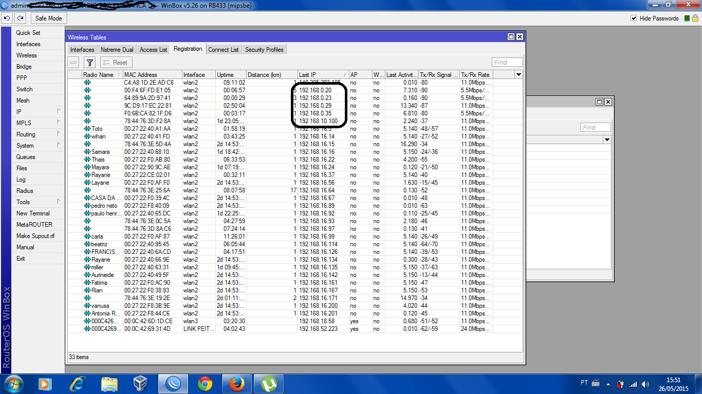 Bom é o seguinte, tava olhando o sinal dos clientes na aba registration do miktoik e vi que aparecem alguns ips que na verdade são de roteadores de clientes.