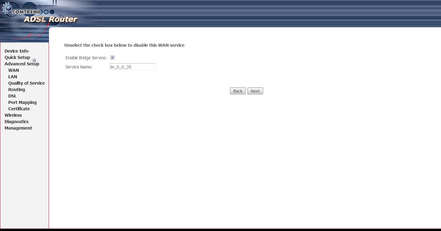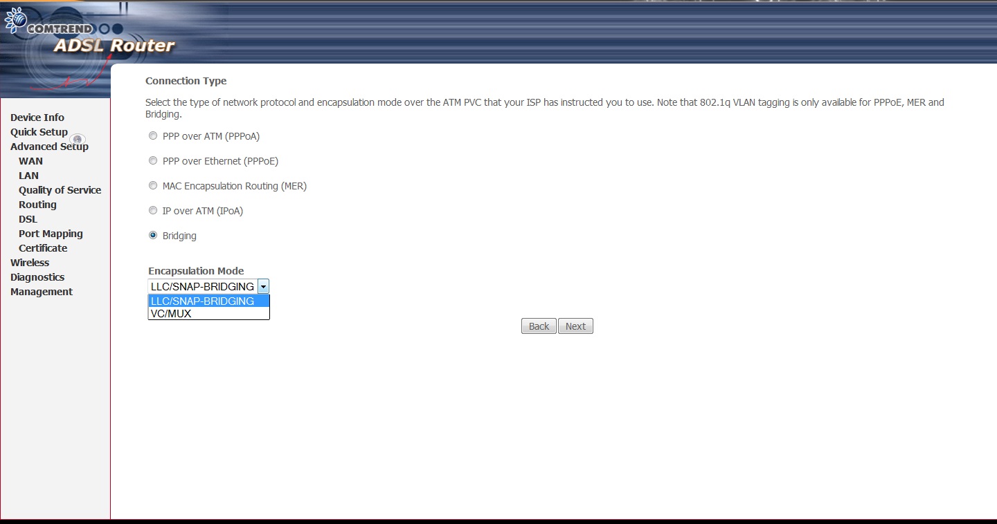 Padrão Re: Modem comtrend ct-5372 vdsl em brigde