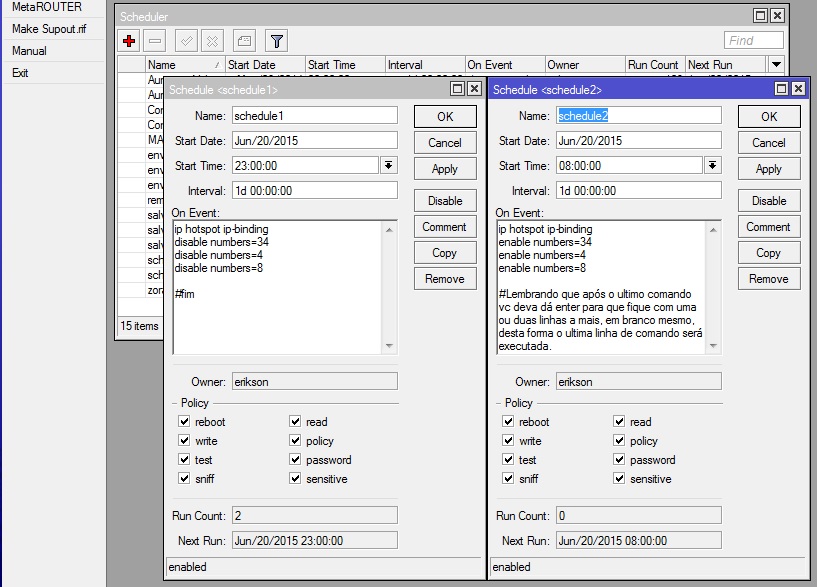 Padrão Re: Desconectar cliente em horário específico Mikrotik Ver 6.27